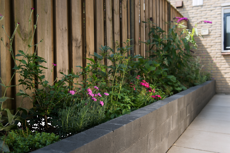 Wallblock New van Tuinvisie is uitstekend te gebruiken om verhogingen te creëren. Denk hierbij aan het maken van borders, muren of een verhoogd terras. Wallblock New kenmerkt zich aan de rechte kanten. De strakke randen van het stapelblok zorgen voor een moderne uitstraling in je tuin. Daarnaast hebben de strakke stapelblokken een hoge maatvastheid, waardoor deze ideaal te gebruiken zijn als basis voor een strakke muur of moderne border. Het stapelblok is ook in andere afmetingen en kleuren verkrijgbaar.