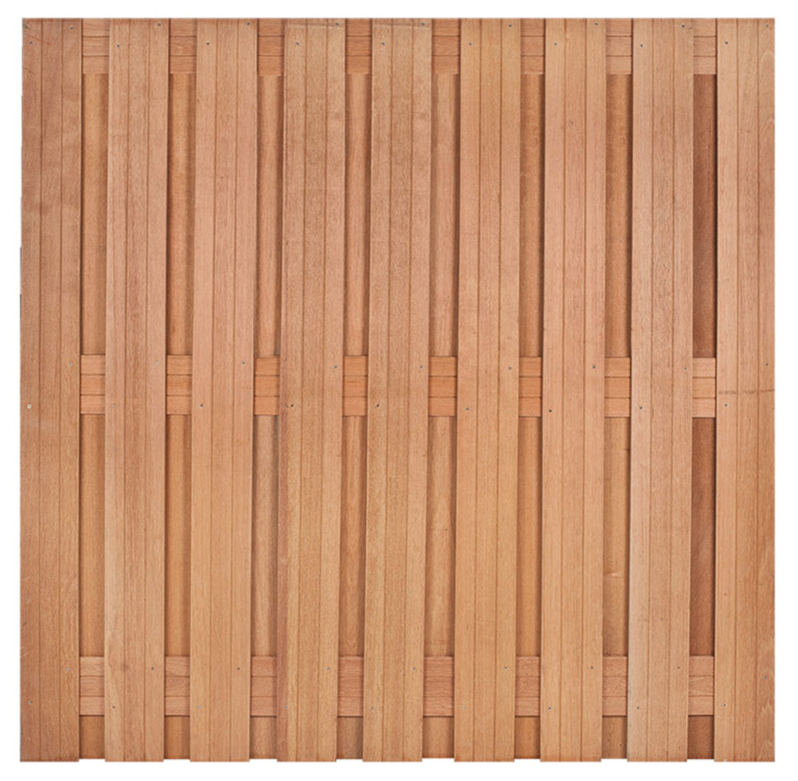 Tuinscherm Hardhout Bahia 19planks 14x140mm 180x180cm RVS Geschroefd